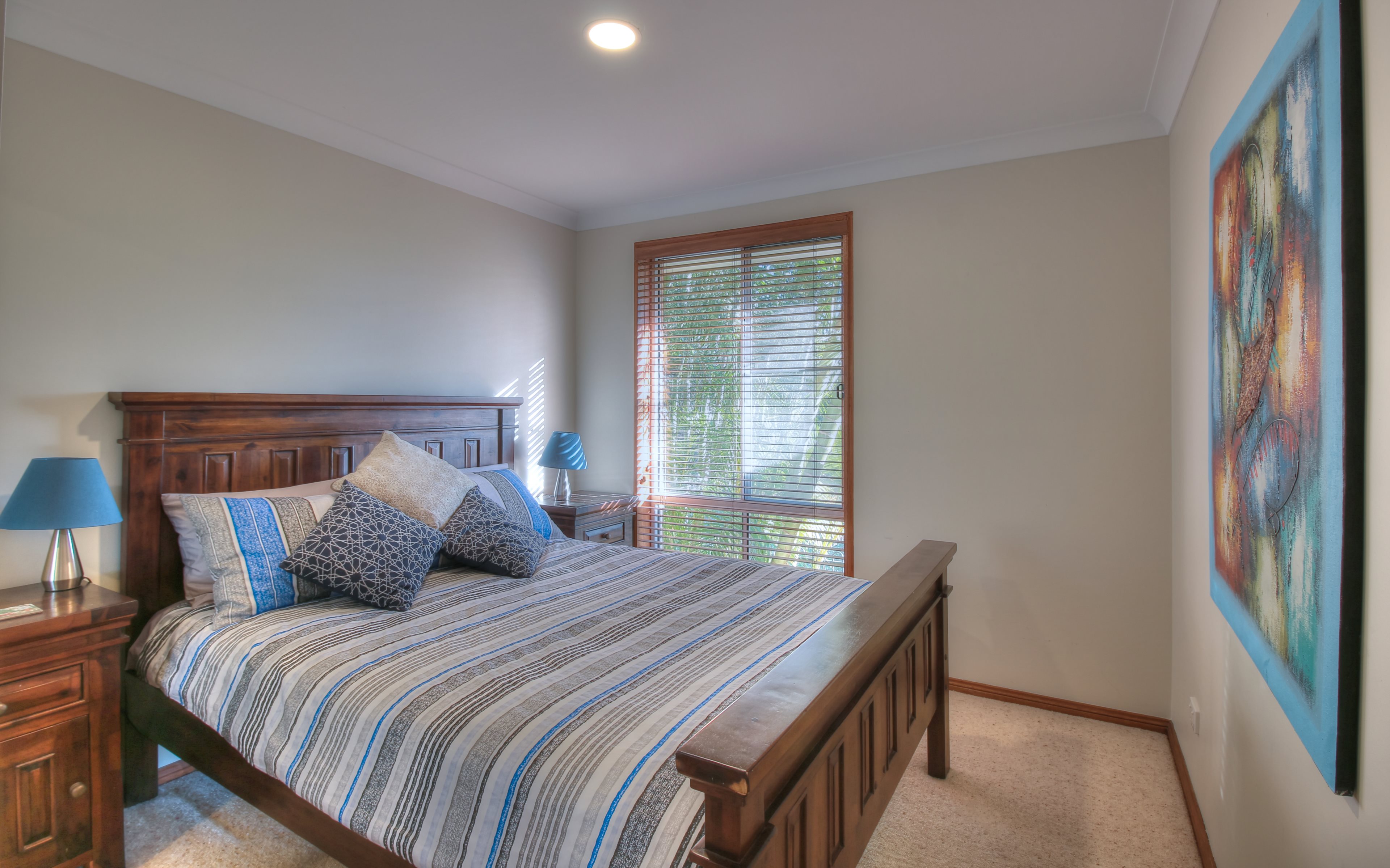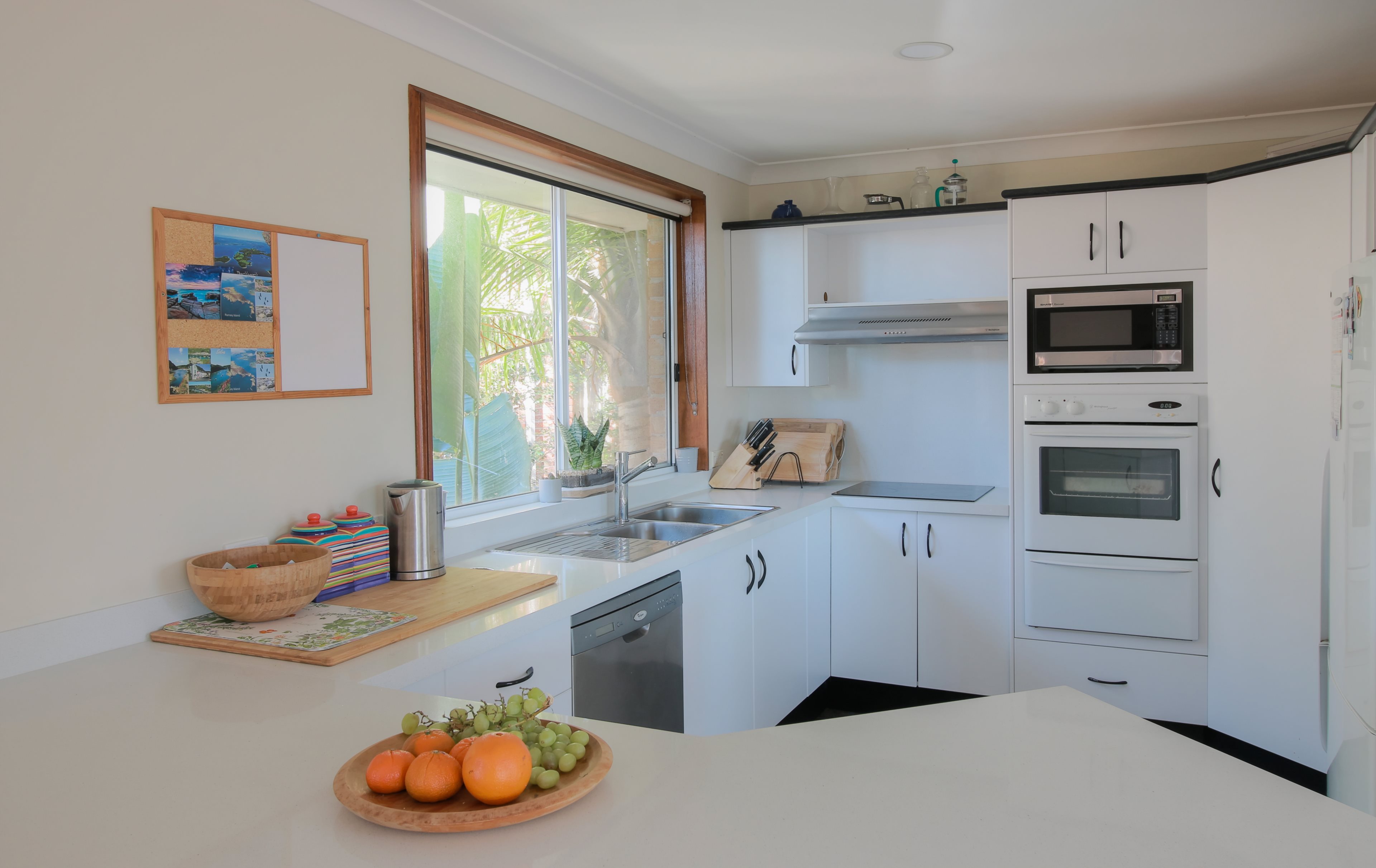 The kitchen is fully-equipped to enjoy a lengthy family holiday and cook at home every night. The master bedroom is spacious, with a queen bed, walk through robes, ensuite and chairs for relaxing away from the family. The second bedroom features a queen bed and built in robes, while the third bedroom has two single beds and built in robes (please note the single beds can be joined to make a king bed for an extra fee). There is also a separate laundry with washing machine and dryer, and second central bathroom. All rooms are on one floor and there are 4 separate entertaining/relaxation/dining/deck areas.